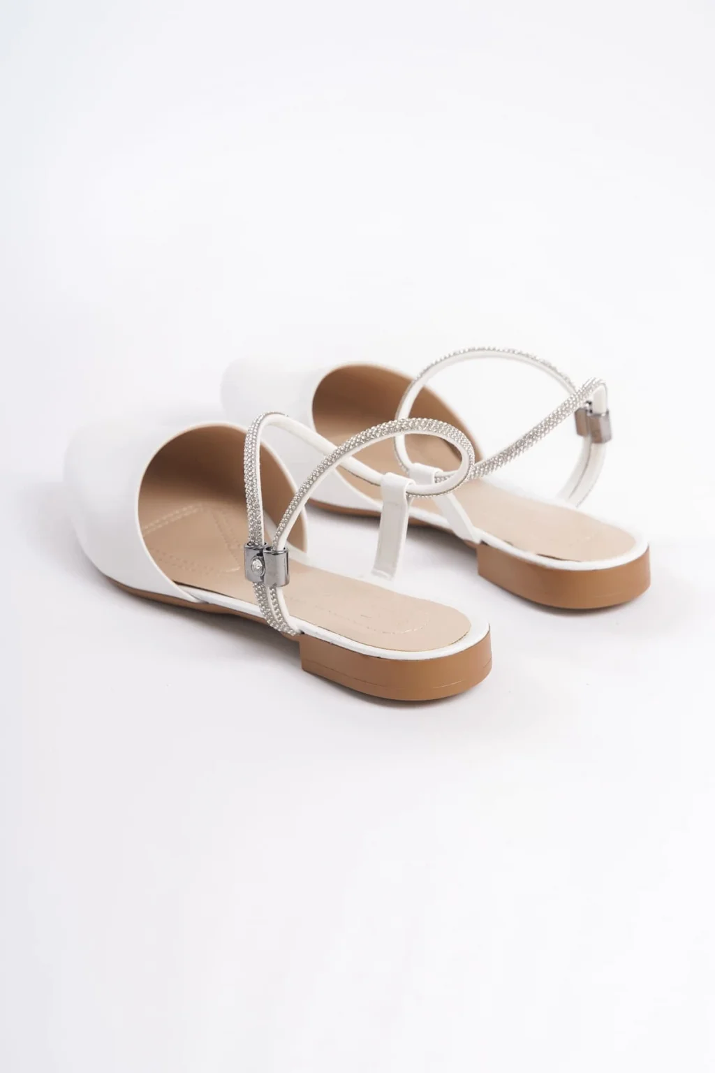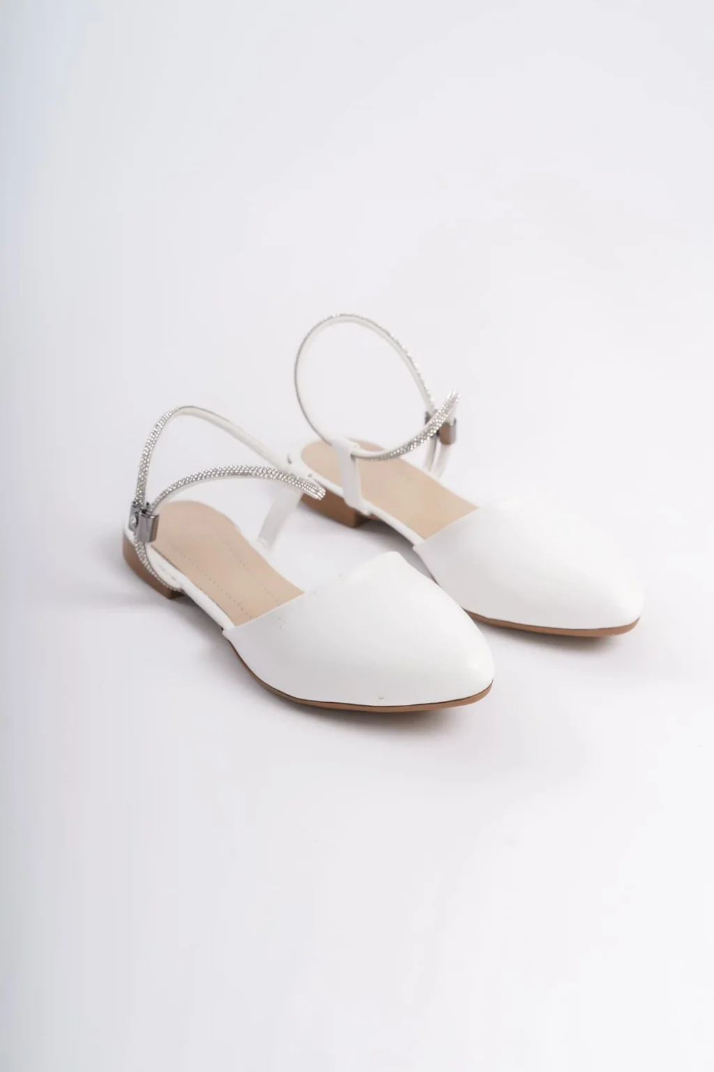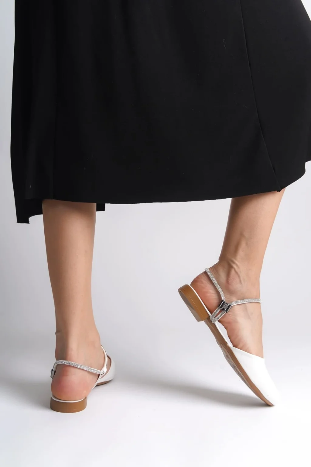 ARIANA Lastikli Ortopedik Rahat Taban Bilekten Taş Detaylı Kadın Babet Ayakkabı CKT - Beyaz
