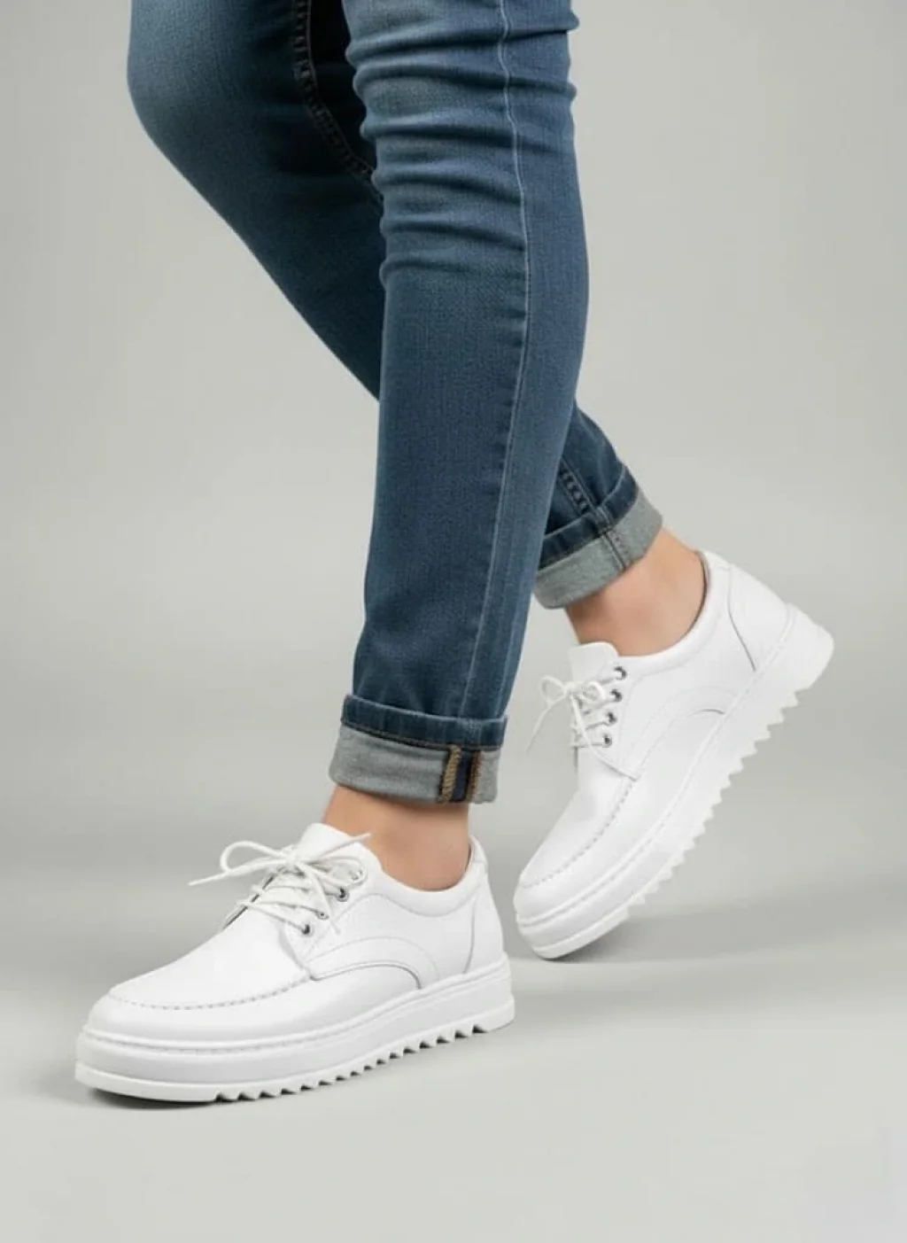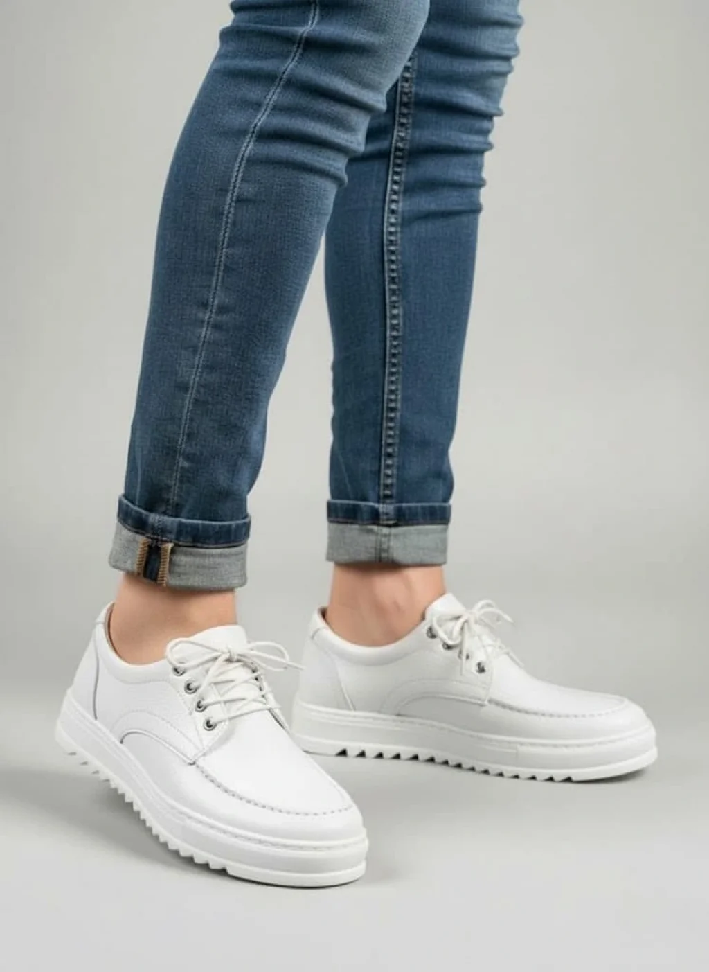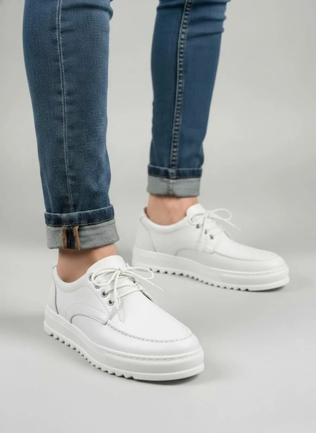 JY-T12x Arts Bağcıklı Cilt Erkek Günlük Spor Klasik Ayakkabı CBT - Beyaz
