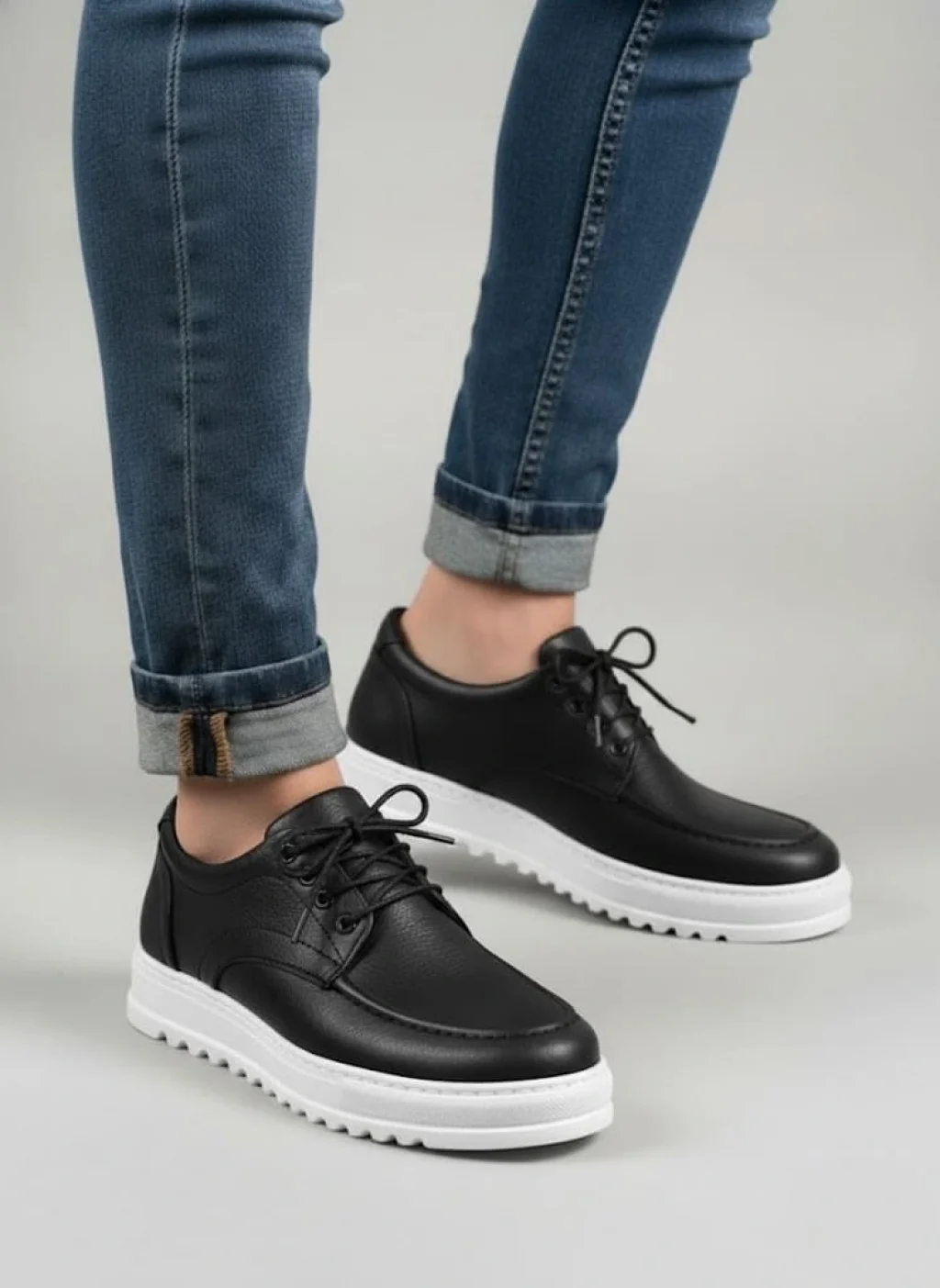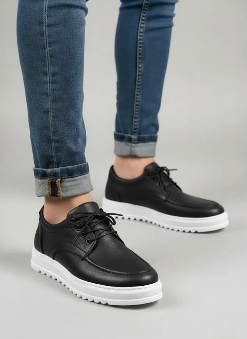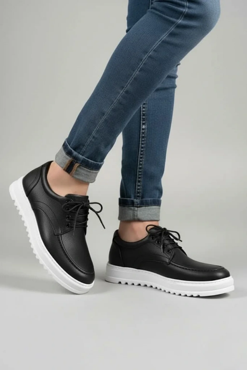 JY-T12x Arts Bağcıklı Cilt Erkek Günlük Spor Klasik Ayakkabı CBT - Siyah