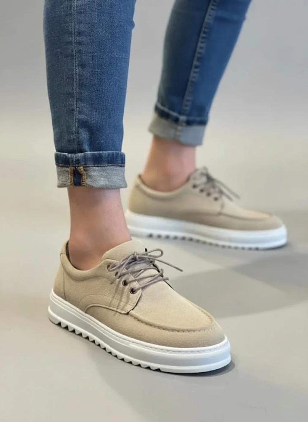 JY-T12x Arts Bağcıklı Süet Erkek Günlük Spor Klasik Ayakkabı SBT - Krem